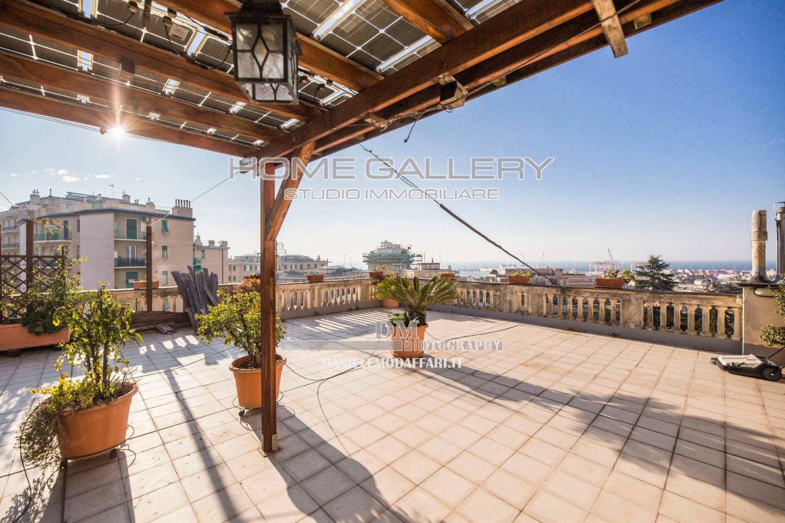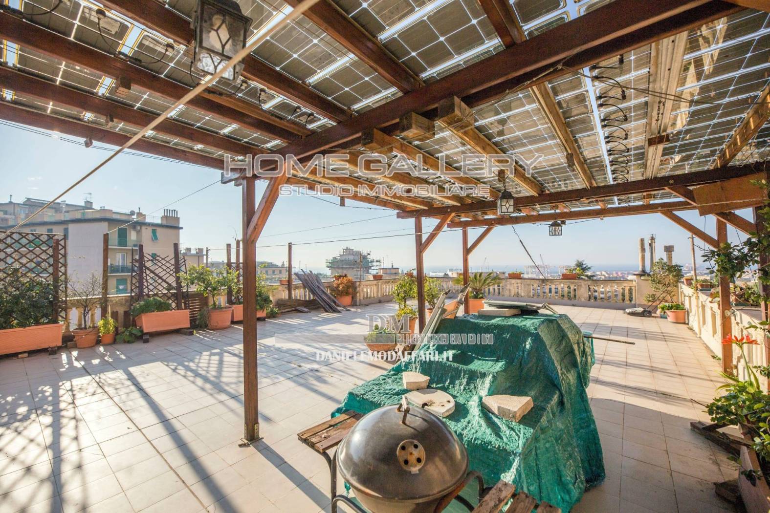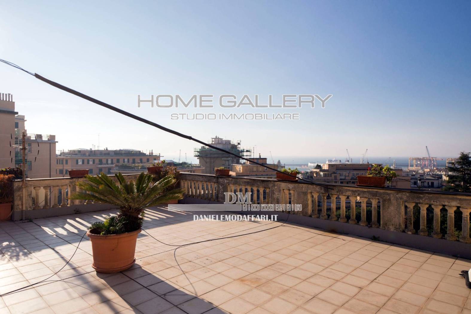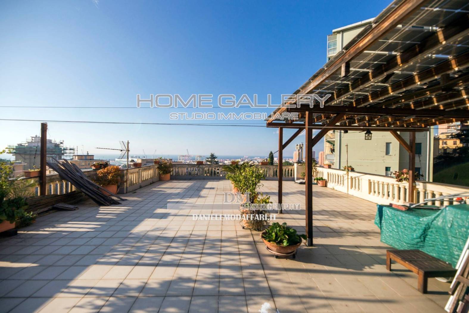 Sampierdarena, a 100 metri dall'Ospedale Villa Scassi, in villa d'epoca di pregio, proponiamo appartamento di 175 mq all'ultimo piano con splendida vista mare e terrazzo sovrastante di 175 mq. L'abitazione, luminosa e silenziosa , comprende sala, 4 camere, studio, cucina abitabile, doppi servizi e ripostiglio. La ristrutturazione interna è recente e curata con particolare attenzione al confort e all'efficienza energetica: classe energetica A3, infissi con tripli vetri, importante isolamento acustico, porta blindata, e climatizzatore. Impianto di riscaldamento autonomo misto solare e caldaia a condensazione. Impianti elettrico e idraulico certificati, cassaforte, sistema d'allarme e videosorveglianza nel vano scala. Il terrazzo sovrastante ampiamente soleggiato con vista aperta fino al mare rappresenta un autentico spazio di vita all'aperto. La torretta panoramica, oggi utilizzata come locale termico completa la parte superiore dell'immobile e ne valorizza l'aspetto architettonico. Box auto in corso Magellano adatto ad auto fino a 4 metri di lunghezza più moto disponibile a parte ( 37.000 euro) Un'abitazione unica in zona, ideale per chi desidera vivere in una villa panoramica con terrazzo soleggiato vista mare, a pochi passi dal centro e con prestazioni energetiche di livello A3 che assicurano elevato confort e bassi costi di gestione. Perfetta per chi cerca spazio, luce e indipendenza in un contesto riservato ed elegante Per informazioni e appuntamenti telefonare - HOME GALLERY tel. 010.8609640 - e-mail: quinto@immobiliarehomegallery.it - sito: www.immobiliarehomegallery.com - Via A. Gianelli 103-105 r. Genova Quinto - altra sede in Albaro, Via Bocchella 4. - Altra sede Via Sturla 10