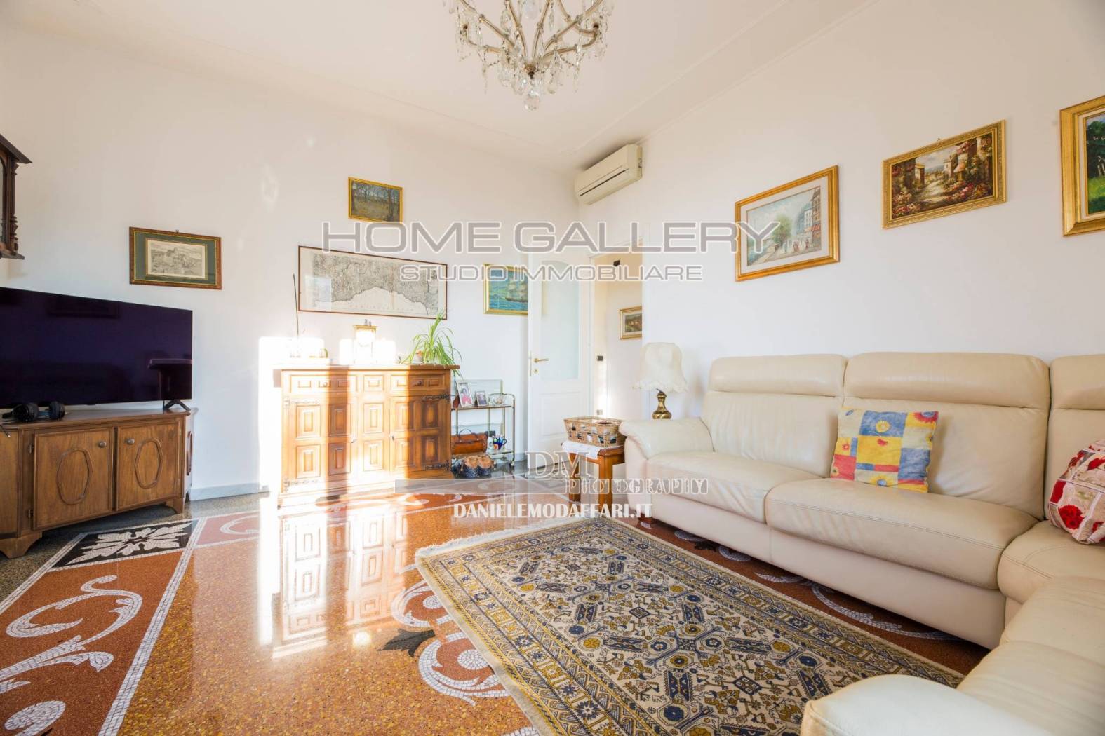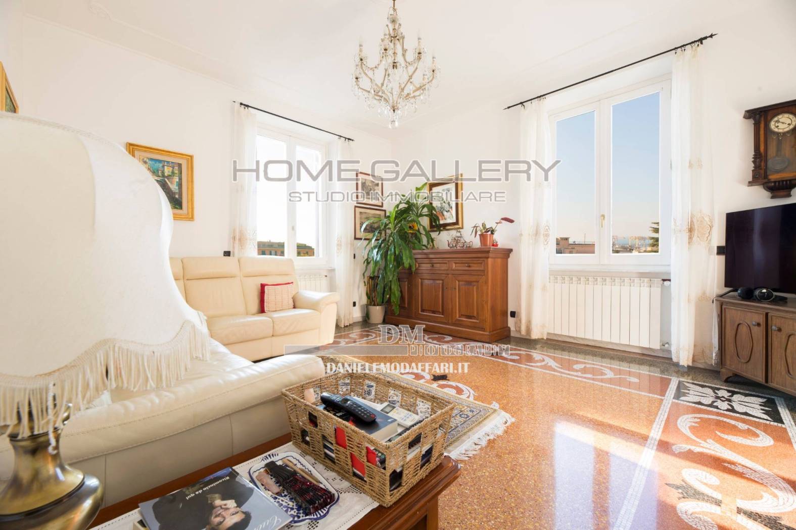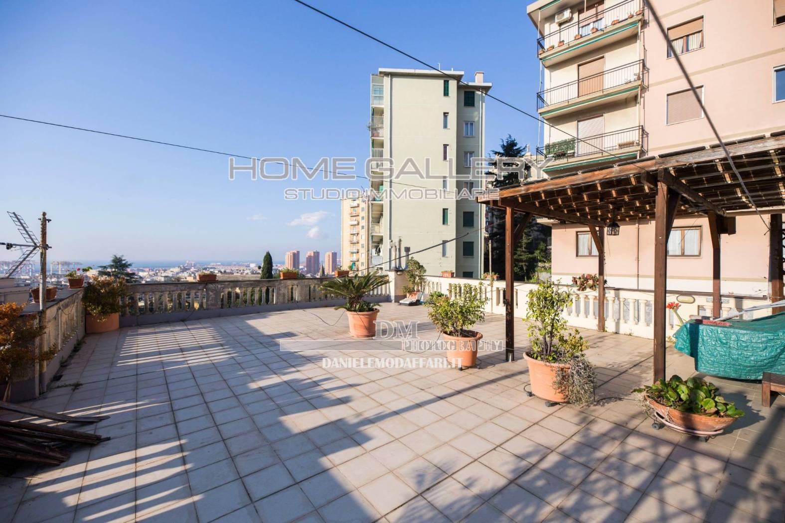 Sampierdarena, a 100 metri dall'Ospedale Villa Scassi, in villa d'epoca di pregio, proponiamo appartamento di 175 mq all'ultimo piano con splendida vista mare e terrazzo sovrastante di 175 mq. L'abitazione, luminosa e silenziosa , comprende sala, 4 camere, studio, cucina abitabile, doppi servizi e ripostiglio. La ristrutturazione interna è recente e curata con particolare attenzione al confort e all'efficienza energetica: classe energetica A3, infissi con tripli vetri, importante isolamento acustico, porta blindata, e climatizzatore. Impianto di riscaldamento autonomo misto solare e caldaia a condensazione. Impianti elettrico e idraulico certificati, cassaforte, sistema d'allarme e videosorveglianza nel vano scala. Il terrazzo sovrastante ampiamente soleggiato con vista aperta fino al mare rappresenta un autentico spazio di vita all'aperto. La torretta panoramica, oggi utilizzata come locale termico completa la parte superiore dell'immobile e ne valorizza l'aspetto architettonico. Box auto in corso Magellano adatto ad auto fino a 4 metri di lunghezza più moto disponibile a parte ( 37.000 euro) Un'abitazione unica in zona, ideale per chi desidera vivere in una villa panoramica con terrazzo soleggiato vista mare, a pochi passi dal centro e con prestazioni energetiche di livello A3 che assicurano elevato confort e bassi costi di gestione. Perfetta per chi cerca spazio, luce e indipendenza in un contesto riservato ed elegante Per informazioni e appuntamenti telefonare - HOME GALLERY tel. 010.8609640 - e-mail: quinto@immobiliarehomegallery.it - sito: www.immobiliarehomegallery.com - Via A. Gianelli 103-105 r. Genova Quinto - altra sede in Albaro, Via Bocchella 4. - Altra sede Via Sturla 10