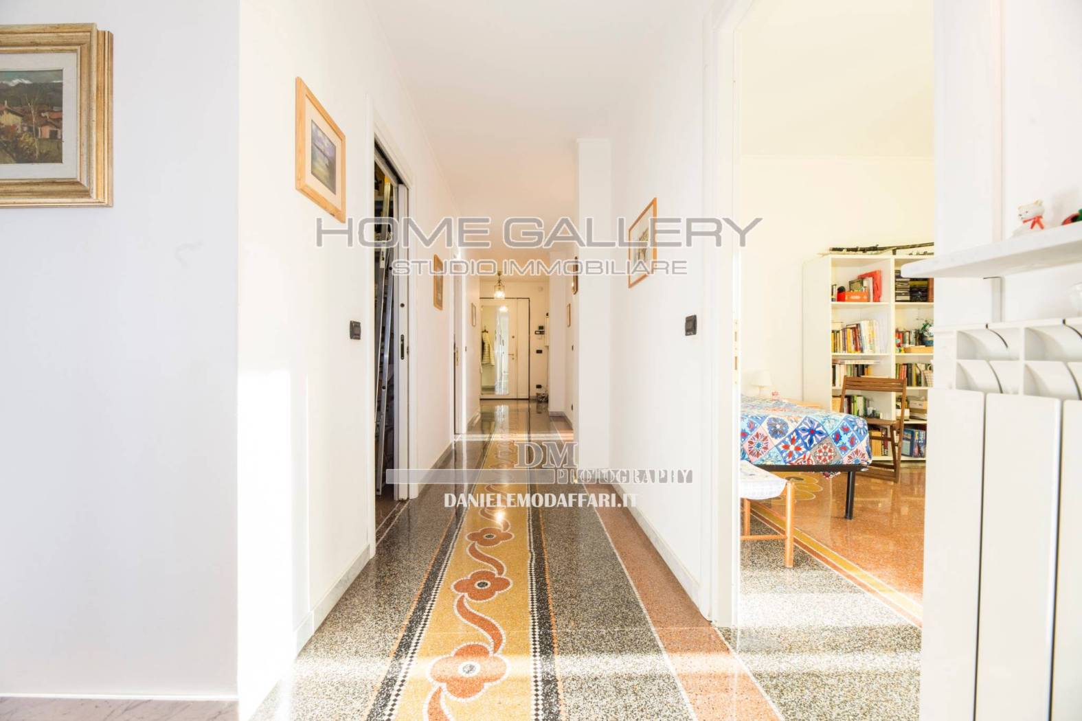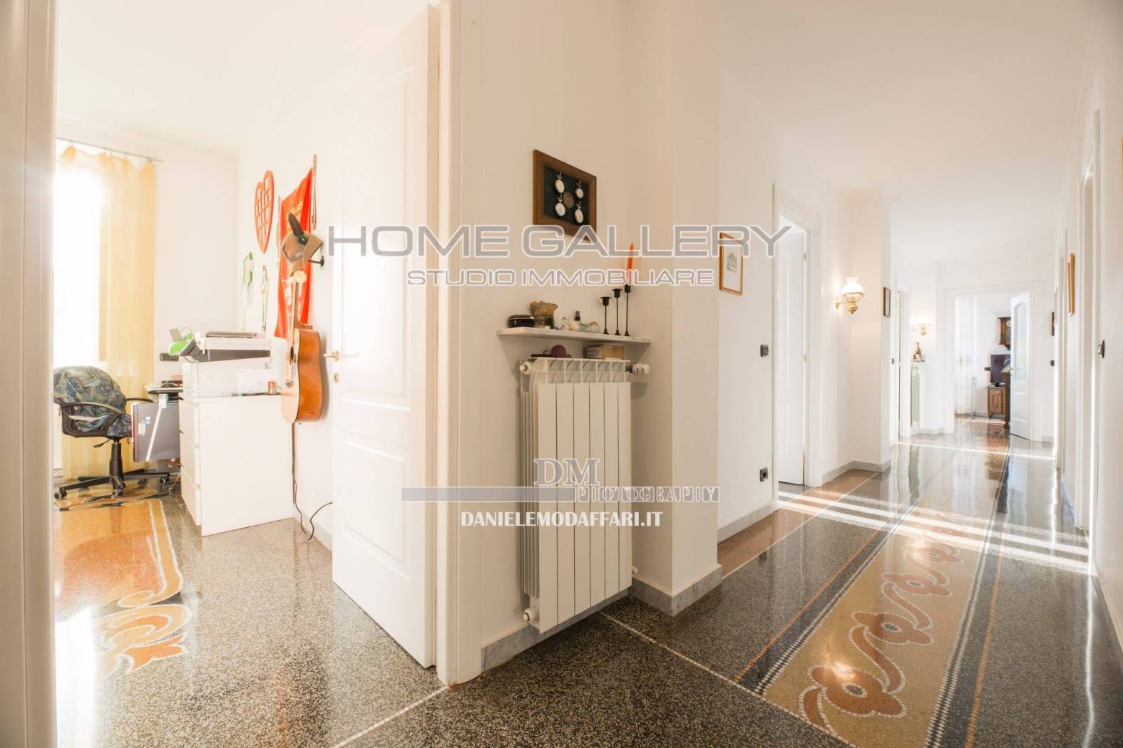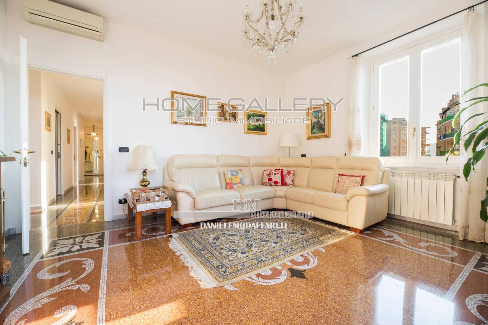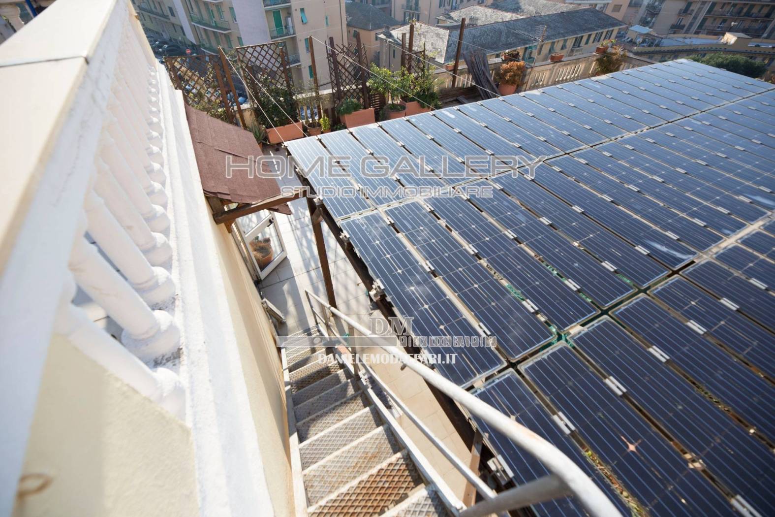 Sampierdarena, a 100 metri dall'Ospedale Villa Scassi, in villa d'epoca di pregio, proponiamo appartamento di 175 mq all'ultimo piano con splendida vista mare e terrazzo sovrastante di 175 mq. L'abitazione, luminosa e silenziosa , comprende sala, 4 camere, studio, cucina abitabile, doppi servizi e ripostiglio. La ristrutturazione interna è recente e curata con particolare attenzione al confort e all'efficienza energetica: classe energetica A3, infissi con tripli vetri, importante isolamento acustico, porta blindata, e climatizzatore. Impianto di riscaldamento autonomo misto solare e caldaia a condensazione. Impianti elettrico e idraulico certificati, cassaforte, sistema d'allarme e videosorveglianza nel vano scala. Il terrazzo sovrastante ampiamente soleggiato con vista aperta fino al mare rappresenta un autentico spazio di vita all'aperto. La torretta panoramica, oggi utilizzata come locale termico completa la parte superiore dell'immobile e ne valorizza l'aspetto architettonico. Box auto in corso Magellano adatto ad auto fino a 4 metri di lunghezza più moto disponibile a parte ( 37.000 euro) Un'abitazione unica in zona, ideale per chi desidera vivere in una villa panoramica con terrazzo soleggiato vista mare, a pochi passi dal centro e con prestazioni energetiche di livello A3 che assicurano elevato confort e bassi costi di gestione. Perfetta per chi cerca spazio, luce e indipendenza in un contesto riservato ed elegante Per informazioni e appuntamenti telefonare - HOME GALLERY tel. 010.8609640 - e-mail: quinto@immobiliarehomegallery.it - sito: www.immobiliarehomegallery.com - Via A. Gianelli 103-105 r. Genova Quinto - altra sede in Albaro, Via Bocchella 4. - Altra sede Via Sturla 10