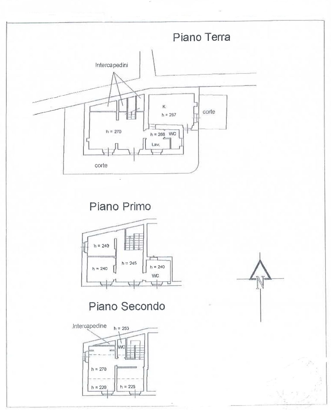 La prima unità è di mq 205 disposta su tre piani, così composta: