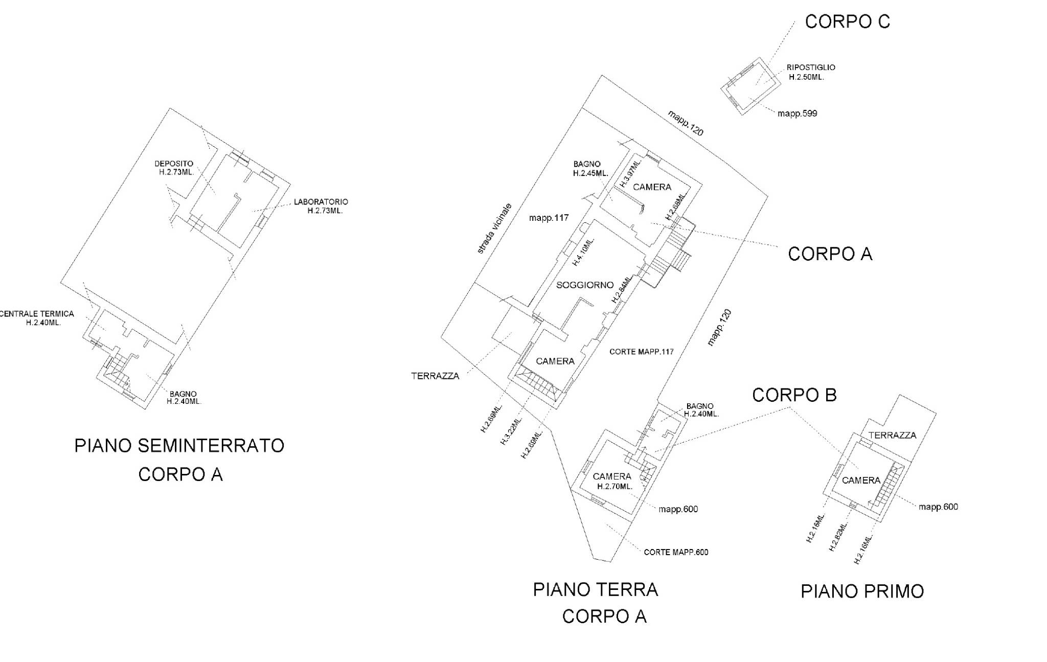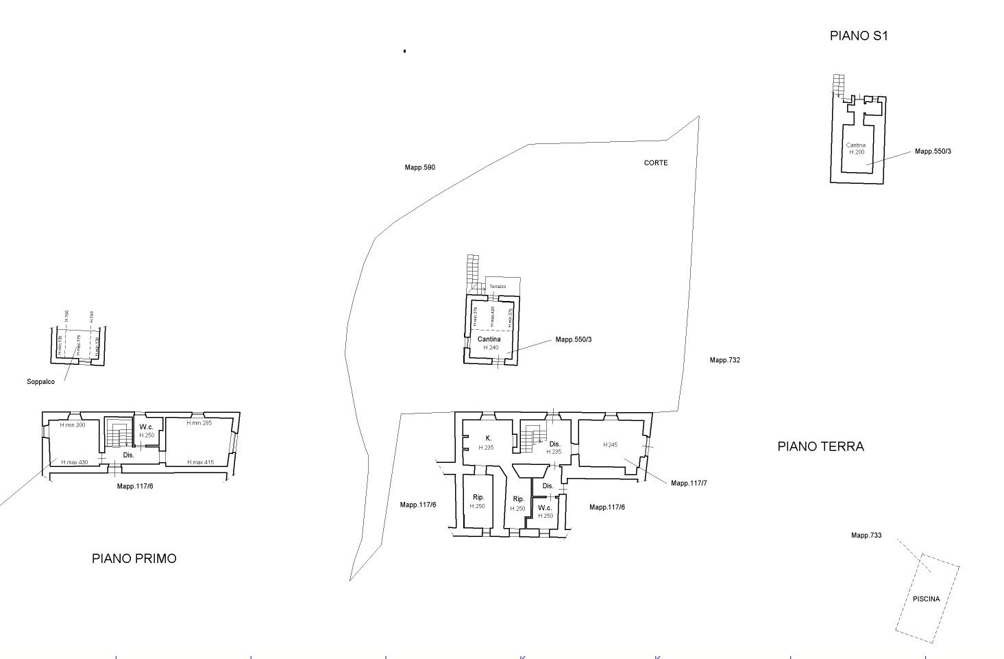 La casa si compone di tre fabbricati composti da una storica casa agricola indipendente disposta su due livelli piano terra ingresso, soggiorno, bagno, lavanderia, disimpegno, cucina con camino, sala da pranzo, dispensa; al piano primo due camere e bagno. Sul retro della casa, con ingresso indipendente, troviamo due appartamenti, uno composto da soggiorno, cucinotto, disimpegno camera matrimoniale e bagno con doccia e vasca ed un altro composto da ingresso indipendente camera con bagno,