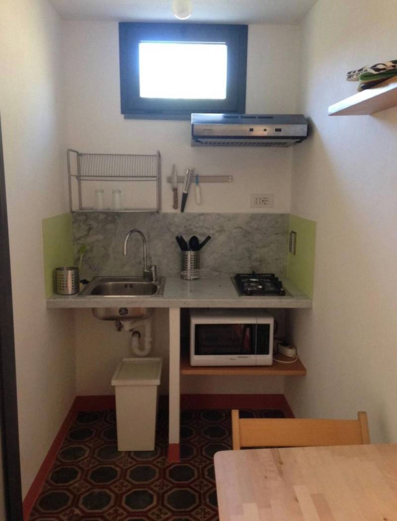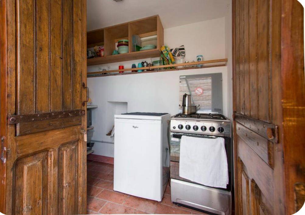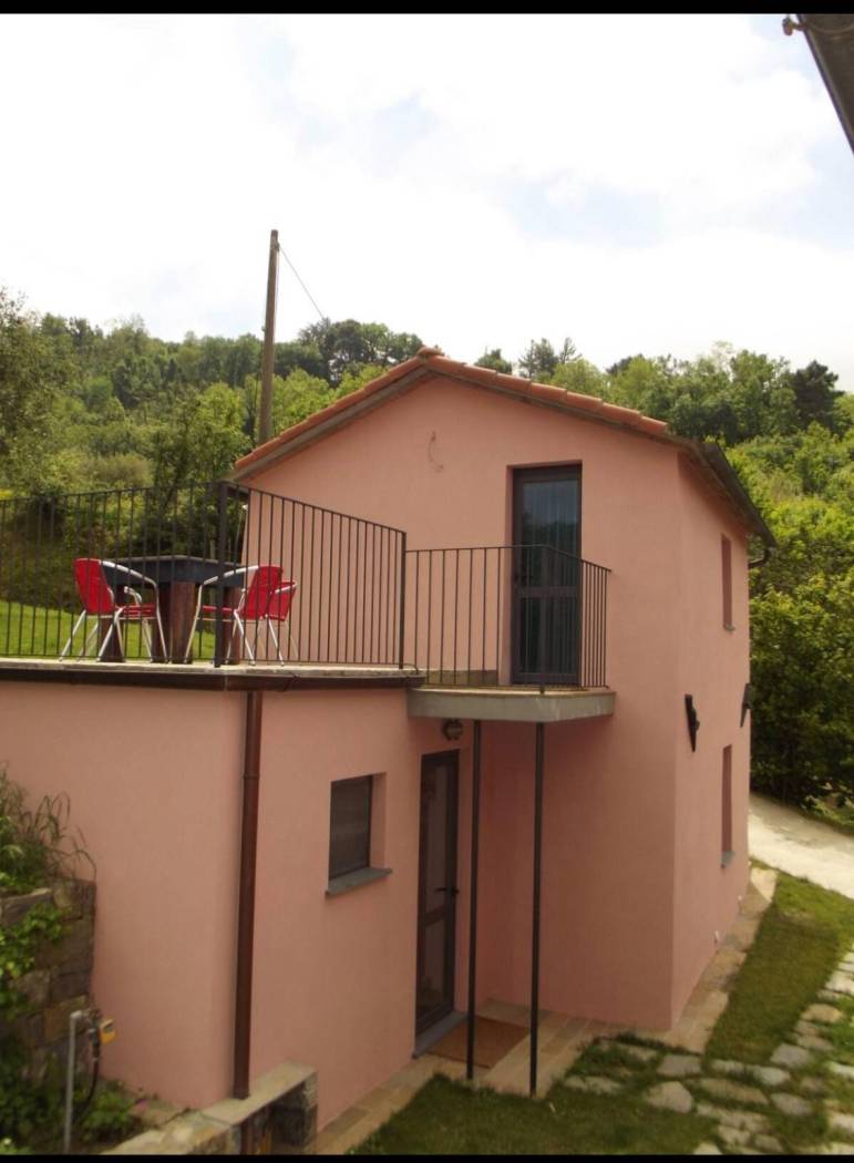 Sul lato sud all'ingresso della proprietà troviamo una piccola casa indipendente disposta su due piani: piano terra cucina, soggiorno con servizio ed al piano primo camera matrimoniale e terrazzo.