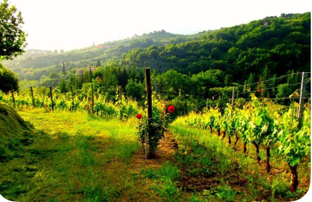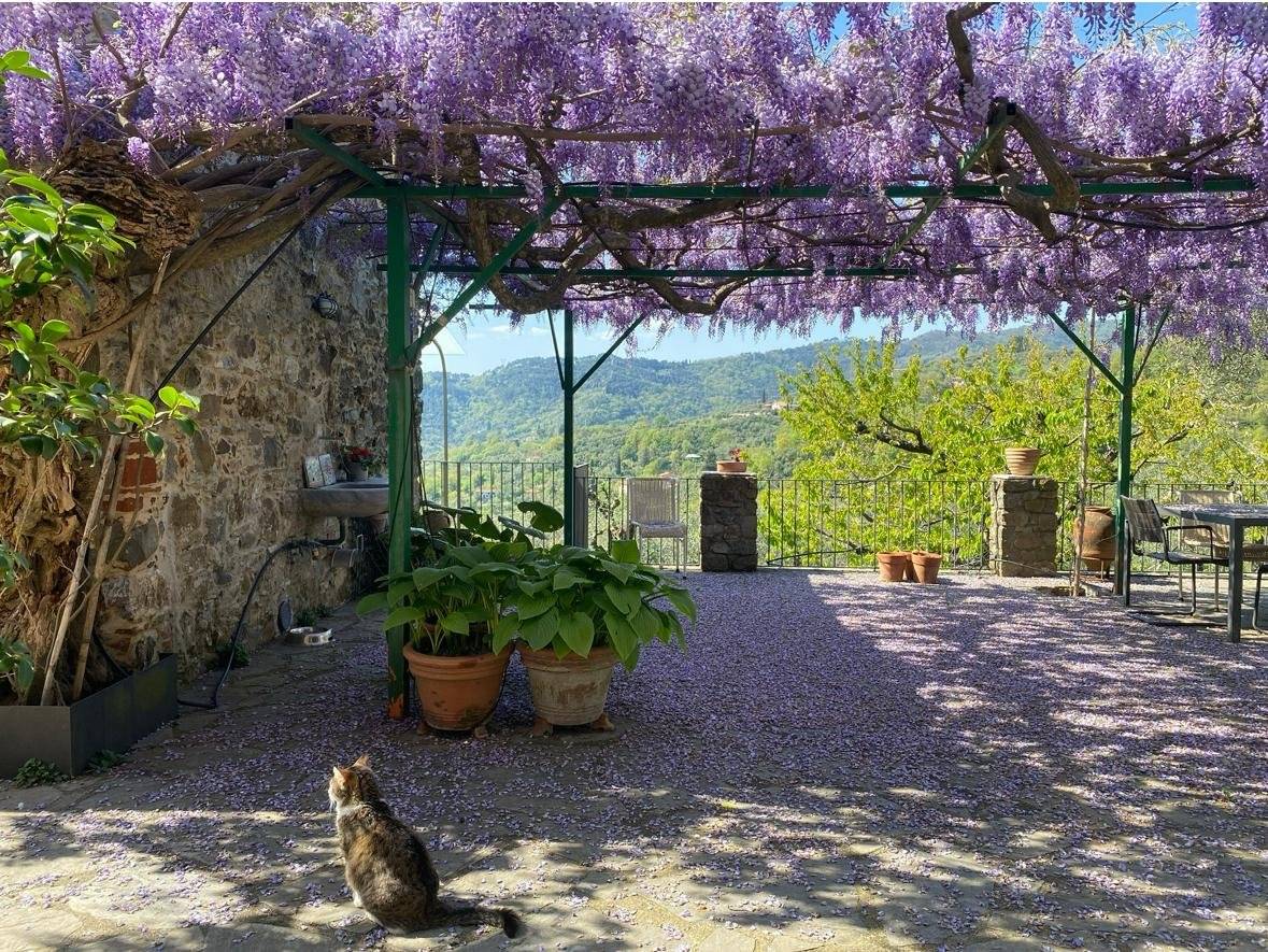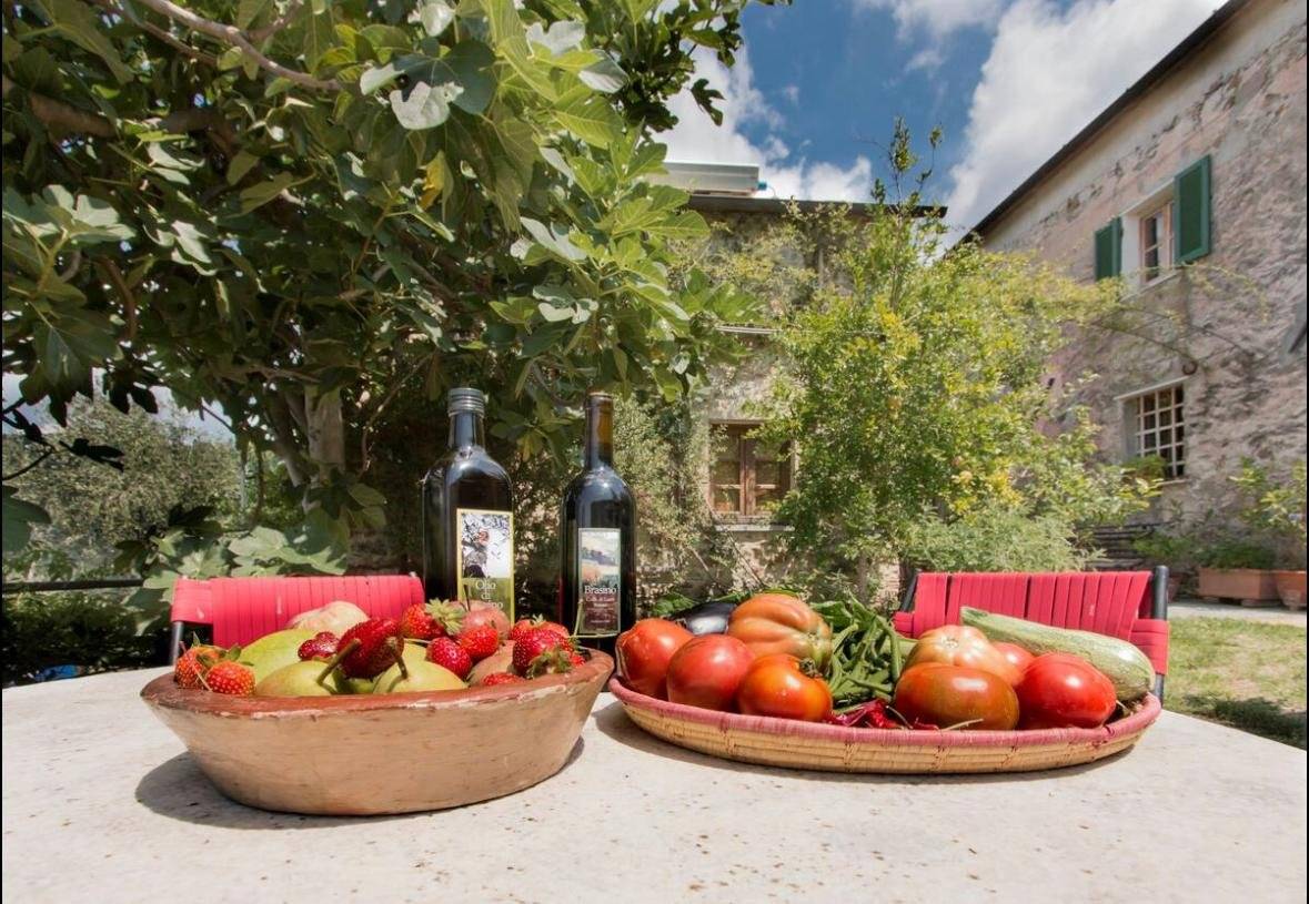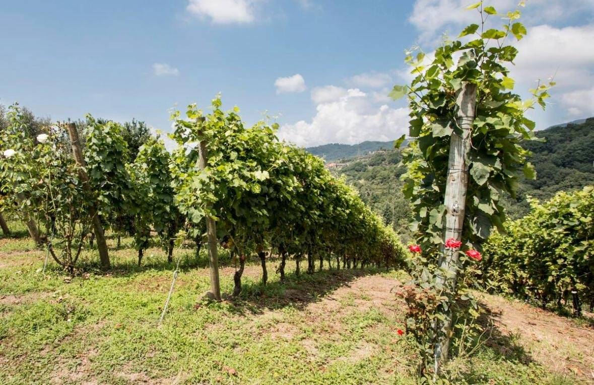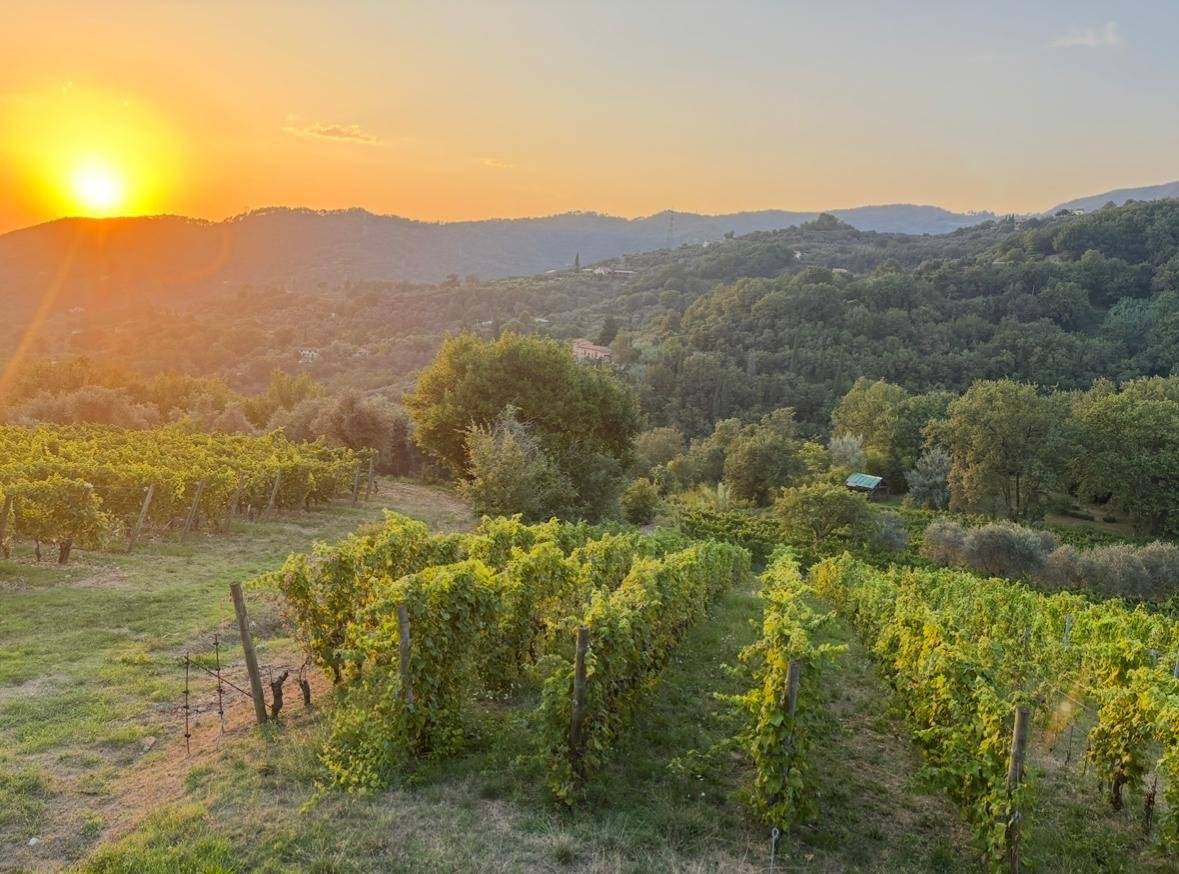 Fosdinovo, in collina con ottima esposizione solare vendesi casa rurale di circa 400 mq. e 5 ettari coltivati a vigna ed uliveto in produzione.