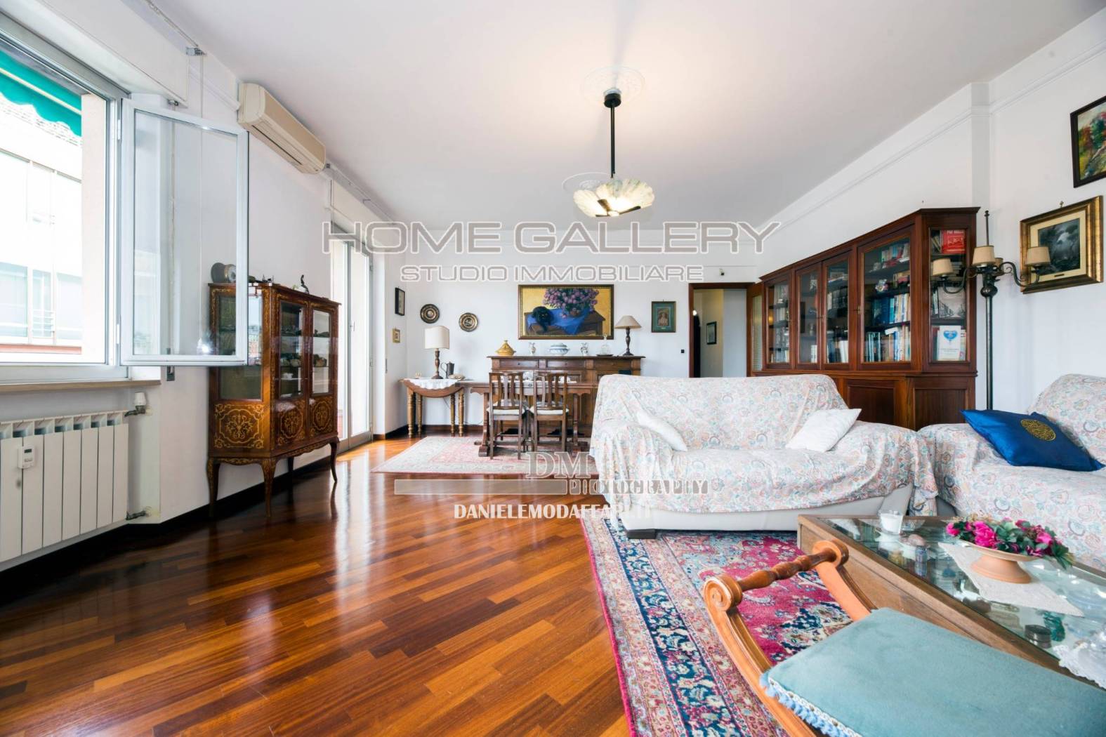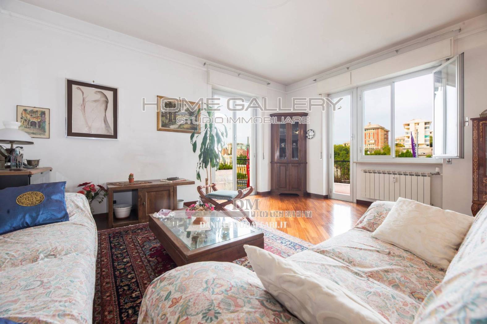 Scopri questo affascinante appartamento di 150 mq, situato in una posizione tranquilla e defilata rispetto a Corso Europa, tra i vivaci quartieri di Sturla e Quarto. Al primo piano, accessibile tramite ascensore, l'immobile è stato ristrutturato con gusto, mantenendo un'atmosfera classica e accogliente. Gli spazi sono ben distribuiti, con un ampio soggiorno che si apre su uno dei due terrazzotti soleggiati, perfetti per godere di momenti di relax all'aperto. Complessivamente i terrazzotti sono quattro.