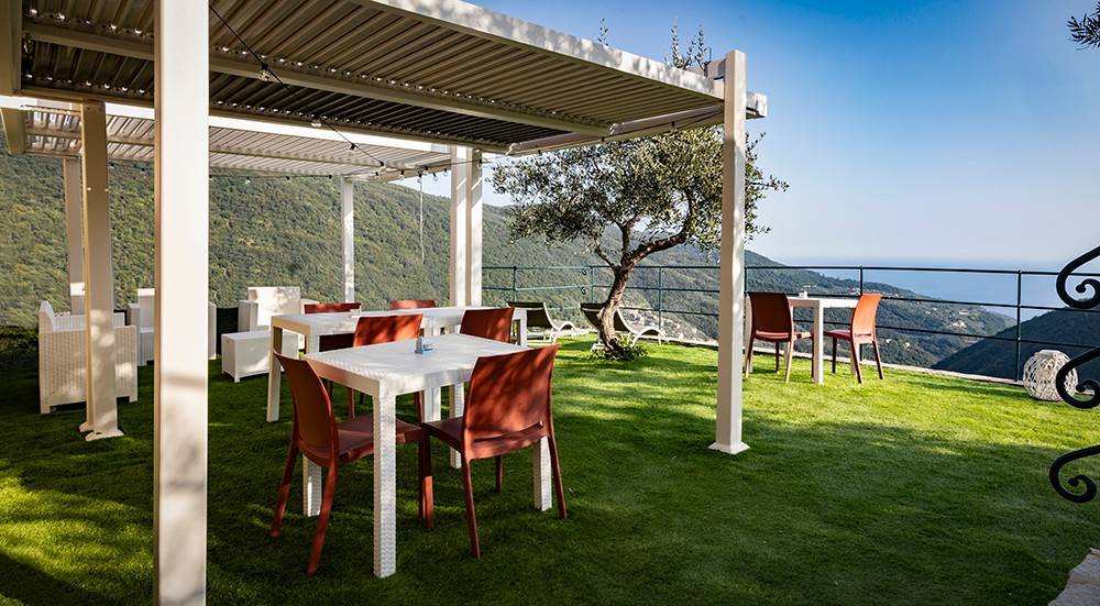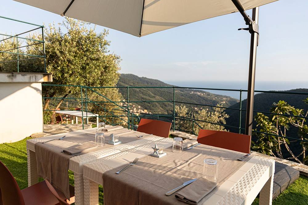 Il ristorante, con ingresso indipendente e cucina nuova completamente attrezzata, può ospitare fino a 80 coperti nella sala interna, oltre terrazza panoramica, ideale per cene ed eventi con vista mozzafiato sul Golfo Paradiso.