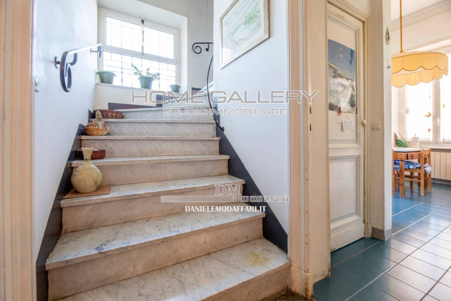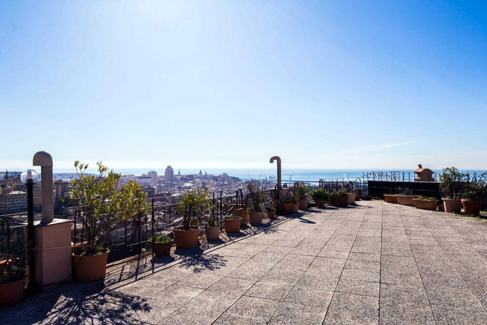 Il piano superiore è dedicato a due ulteriori camere e un bagno, con accesso diretto a uno splendido terrazzo di 150 mq che offre una vista panoramica a 360 gradi sulla città e sul mare. I balconi a nord-ovest aggiungono un tocco di verde affacciandosi su giardini rigogliosi mentre quello a cui si accede dal soggiorno a sud offre una suggestiva vista sul porto-mare e città. L'immobile, in buone condizioni di conservazione, offre la possibilità di essere ridisegnato in chiave moderna o frazionato in due appartamenti distinti. L'appartamento è dotato di doppio impianto di riscaldamento , autonomo con propria caldaia sia condominiale.