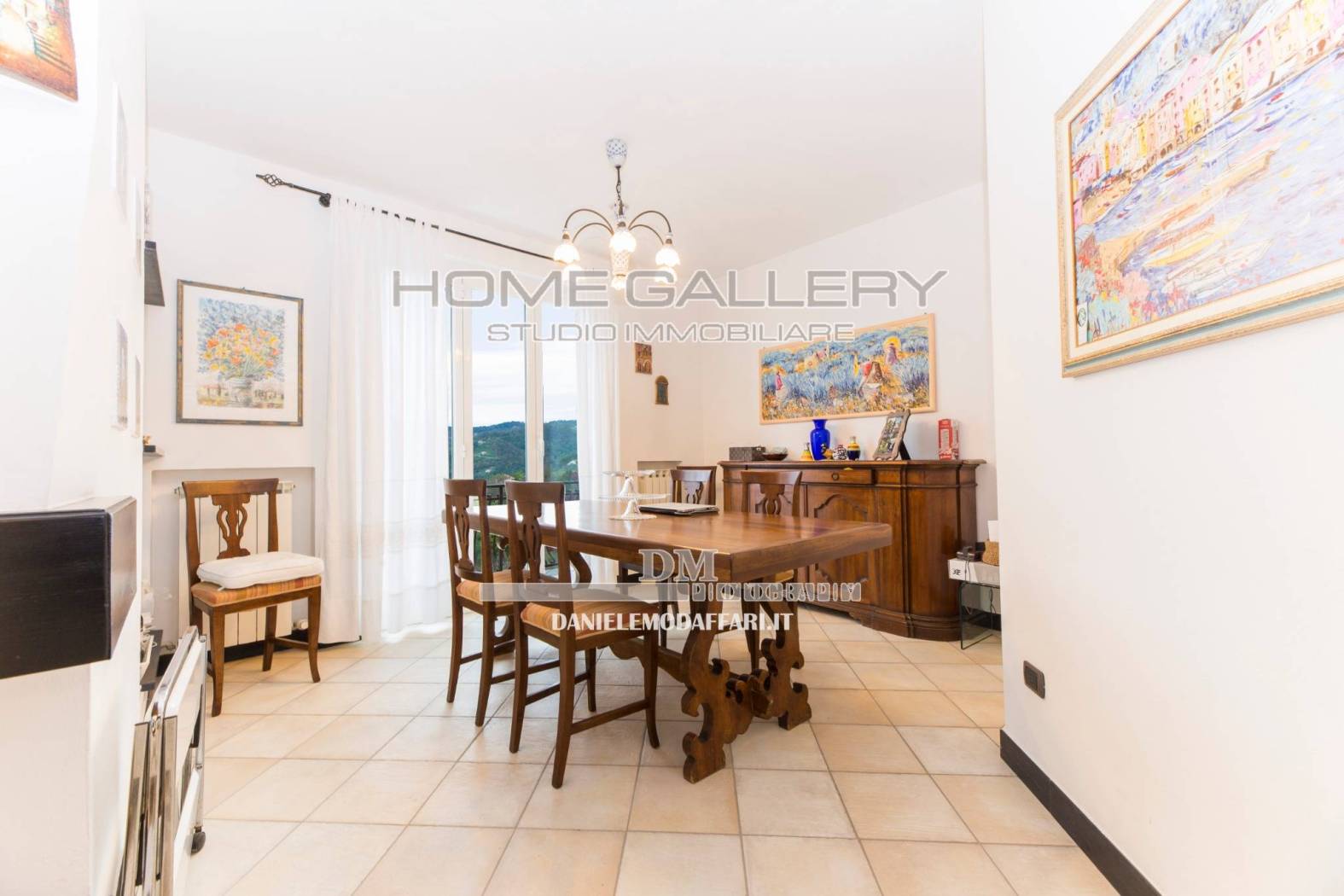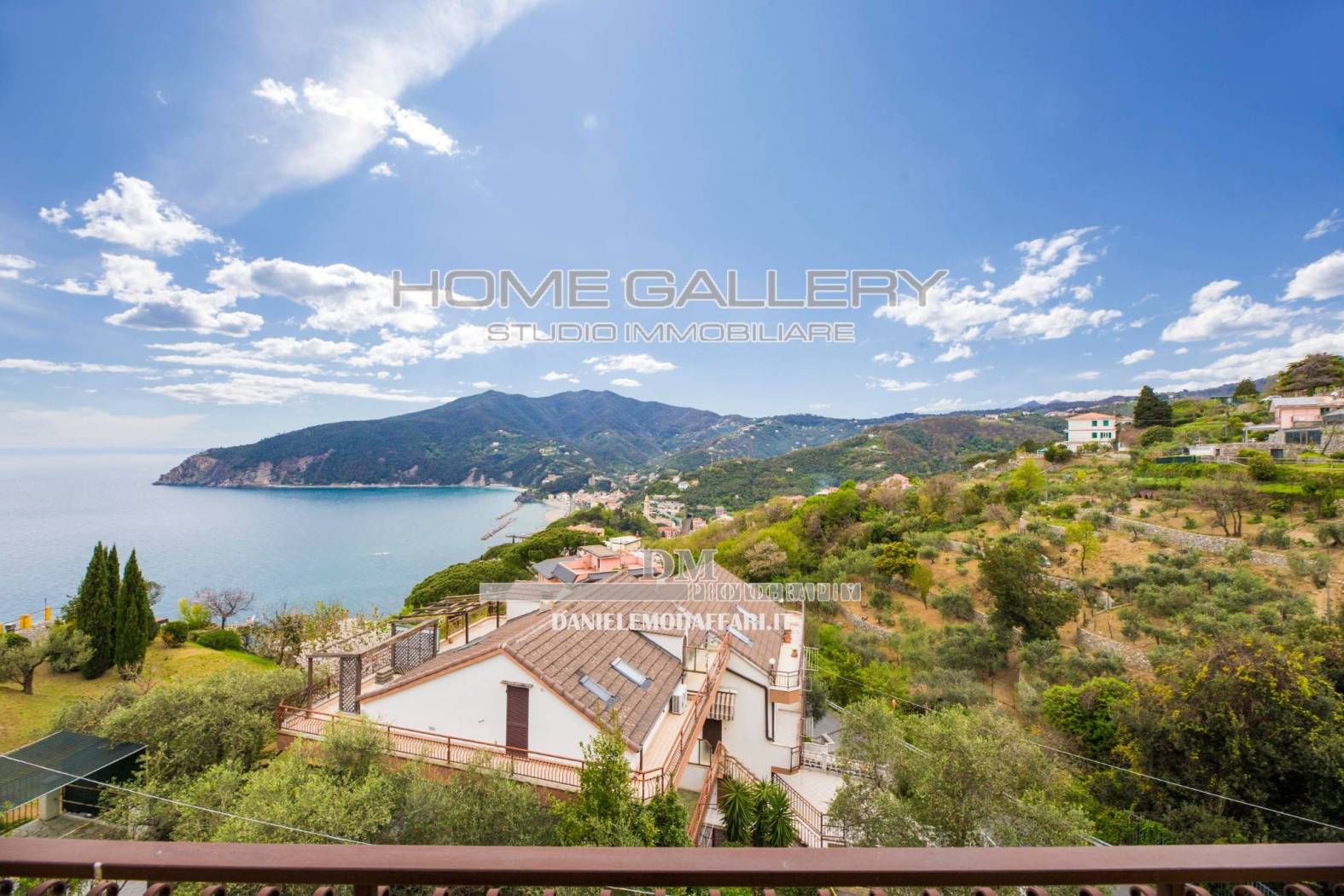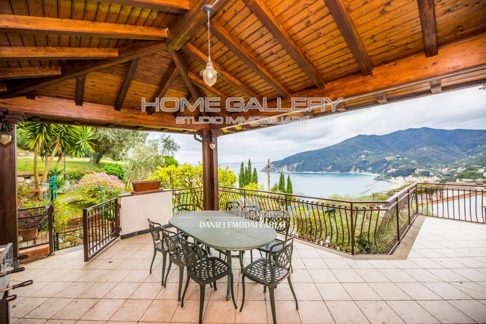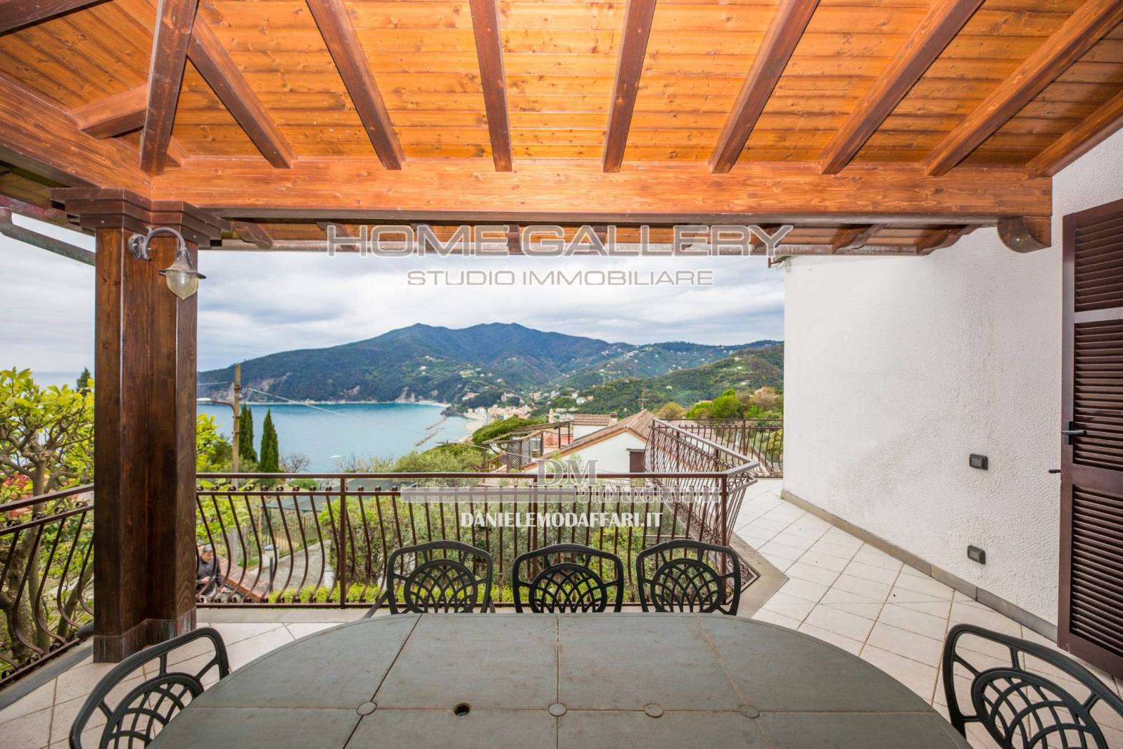 Scopri questa splendida porzione di villa situata sulla collina di Lemeglio, nel suggestivo Borgo Marinaro di Moneglia a pochi passi da Sestri Levante, Portofino e le Cinque Terre. La proprietà si sviluppa su tre piani e offre due appartamenti indipendenti, ciascuno di circa 110 mq. Il primo appartamento vanta una vista mozzafiato sul golfo del Tigullio, con un soggiorno doppio luminoso con terrazzotto e un meraviglioso camino, una cucina vivibile , un ampio giardino e una terrazza loggiata con vista mare completano l'offerta. Al piano superiore, un bagno e due camere matrimoniali con un terrazzoto a sud.