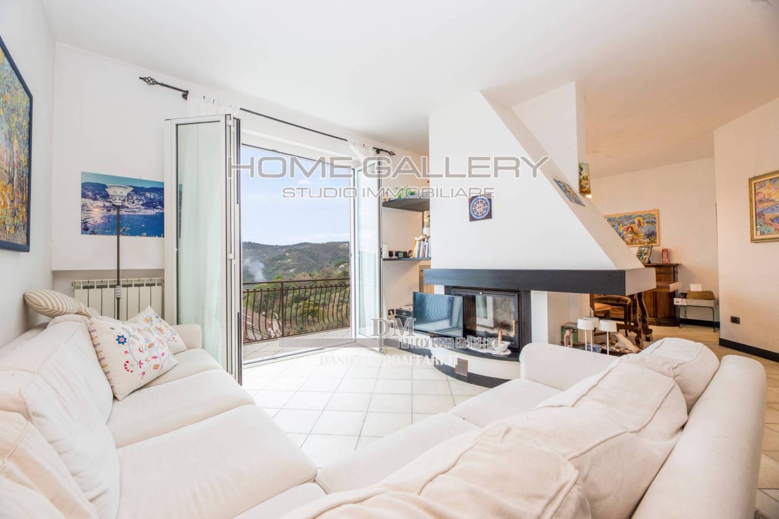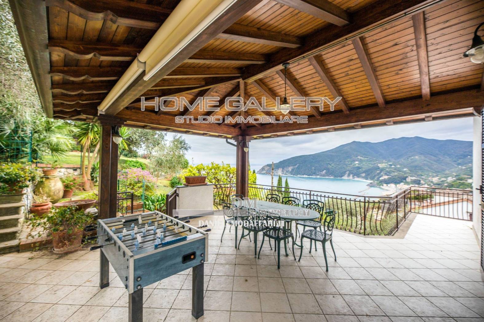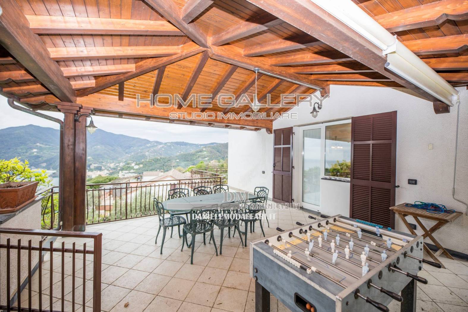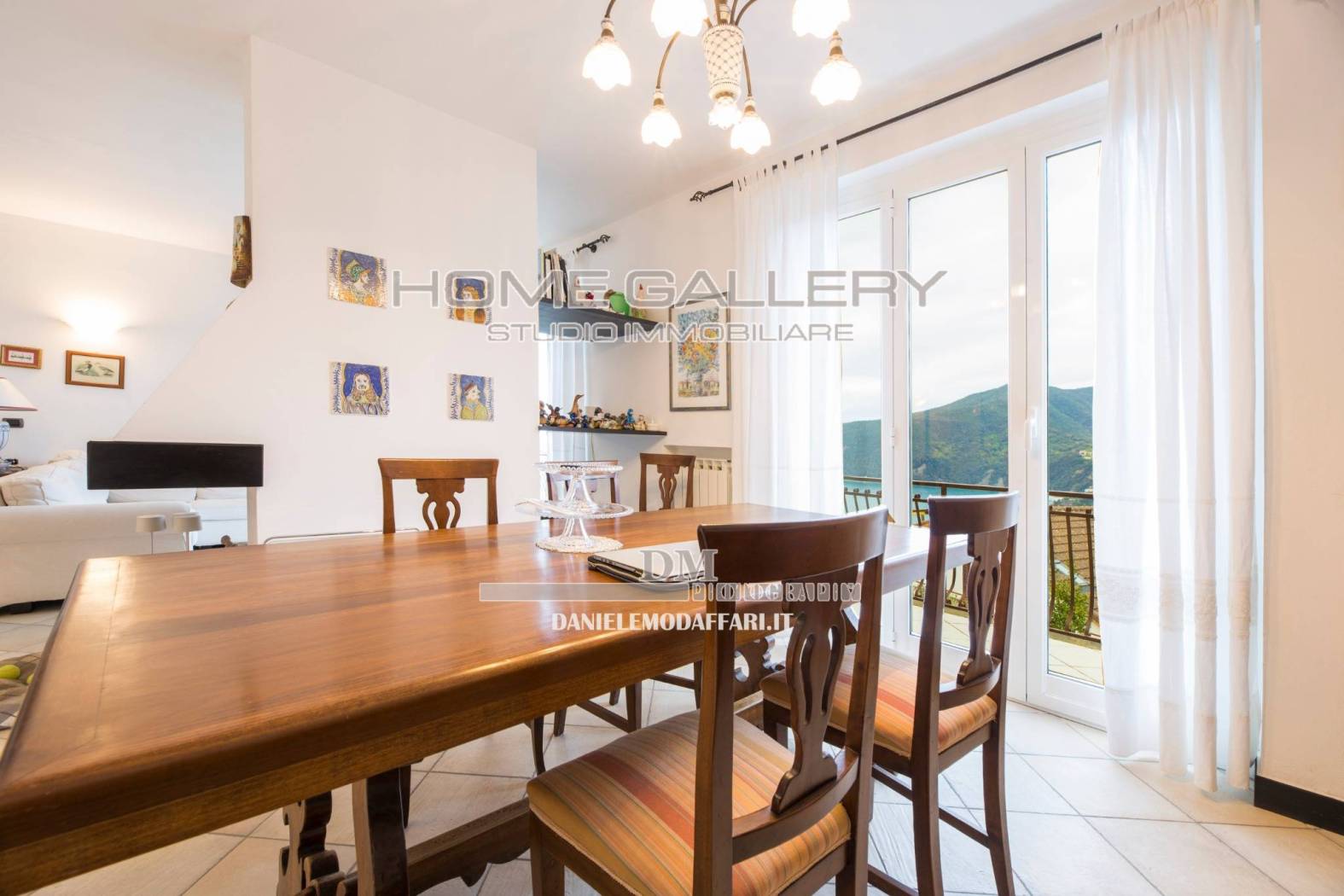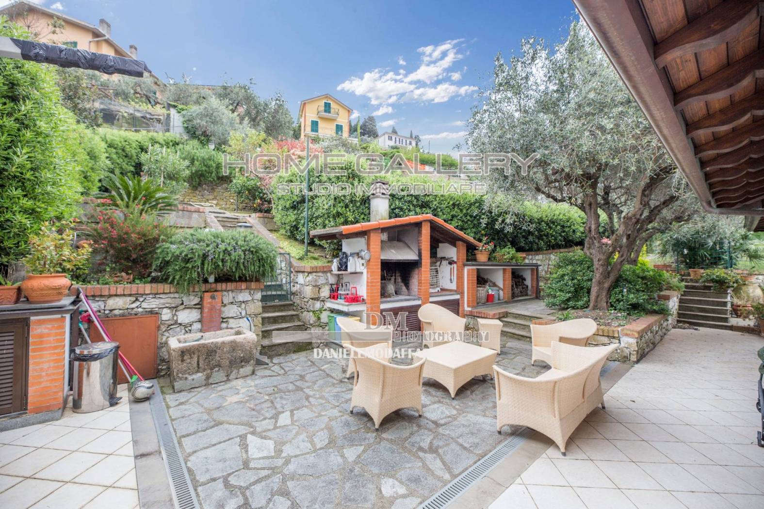 Scopri questa splendida porzione di villa situata sulla collina di Lemeglio, nel suggestivo Borgo Marinaro di Moneglia a pochi passi da Sestri Levante, Portofino e le Cinque Terre. La proprietà si sviluppa su tre piani e offre due appartamenti indipendenti, ciascuno di circa 110 mq. Il primo appartamento vanta una vista mozzafiato sul golfo del Tigullio, con un soggiorno doppio luminoso con terrazzotto e un meraviglioso camino, una cucina vivibile , un ampio giardino e una terrazza loggiata con vista mare completano l'offerta. Al piano superiore, un bagno e due camere matrimoniali con un terrazzoto a sud.