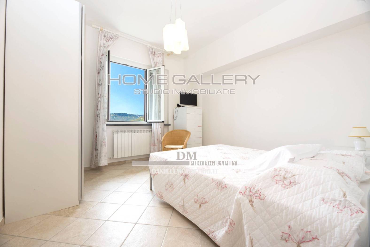 Il secondo appartamento, anch'esso con ingresso indipendente, è composto da un soggiorno con cucina a vista, tre camere e due bagni, perfetto per famiglie numerose o come soluzione per ospiti. Dall'appartamento si accede ad una suggestiva terrazza vista mare e borgo e ad una porzione di giardino. TERMOAUTONOMO