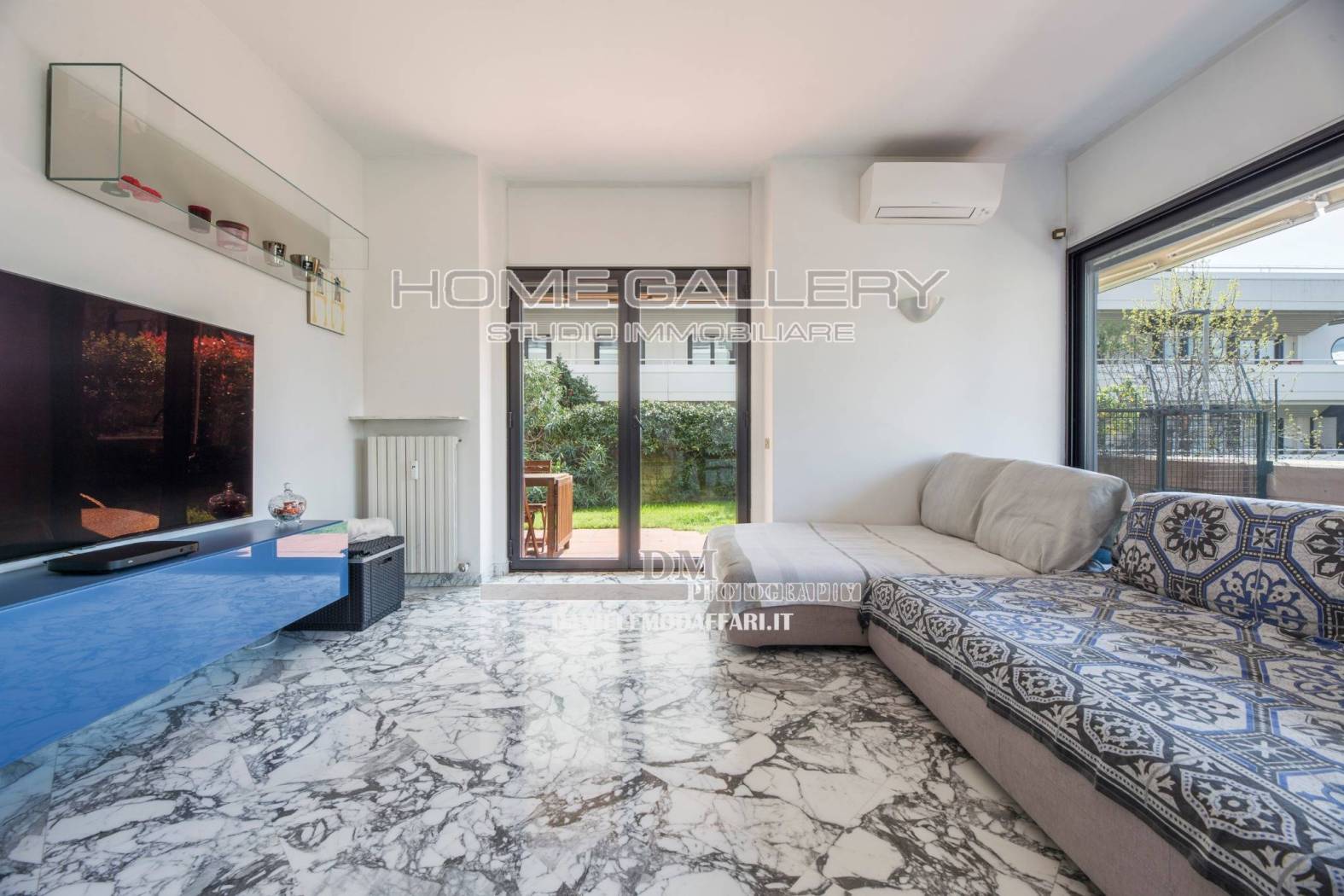 L'appartamento è composto da un ampio soggiorno luminoso con accesso sia al terrazzo che al giardino, una cucina funzionale, tre camere matrimoniali e tre bagni, rendendolo perfetto per famiglie o per chi cerca spazio e comfort. Completa la proprietà una ampia stanza lavanderia/bagno e un ampio spogliatoio. La sua esposizione sud-est garantisce una luminosità naturale durante tutto il giorno, mentre il riscaldamento centralizzato e l'aria condizionata assicurano il massimo del benessere.