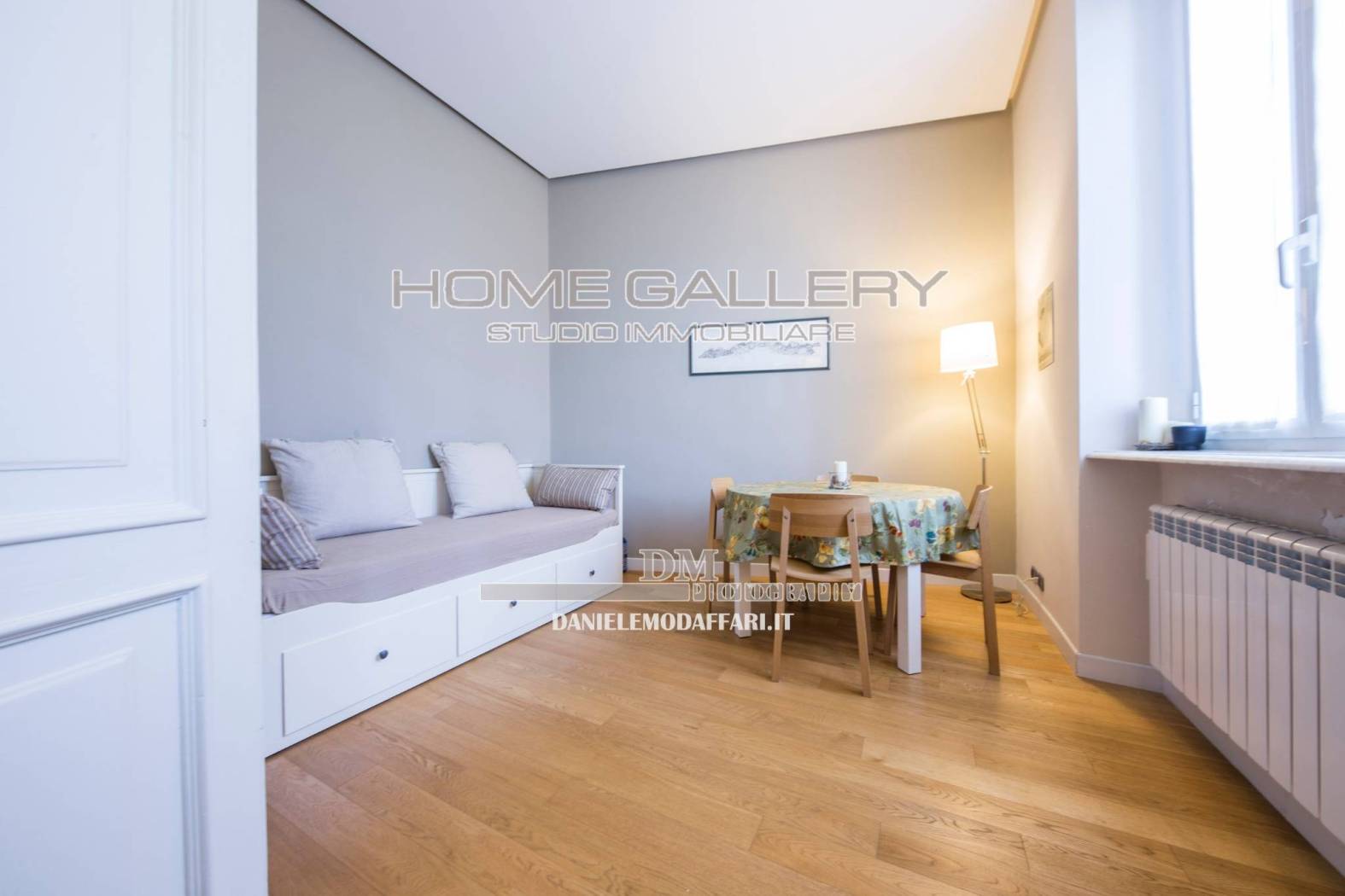 L'appartamento è composto da una moderna zona living con cucina a vista con mensola per pranzare, una spaziosa camere matrimoniale, una seconda stanza che può essere adibita o a sala da pranzo o seconda camera ed un bagno elegante. La seconda stanza attualmente è adibita a sala da pranzo con divano letto . L'esposizione aperta garantisce una vista aperta, rilassante e silenziosa ideale per chi desidera un'oasi di pace nel cuore della città. IMMOBILE TOTALMENTE ARREDATO.