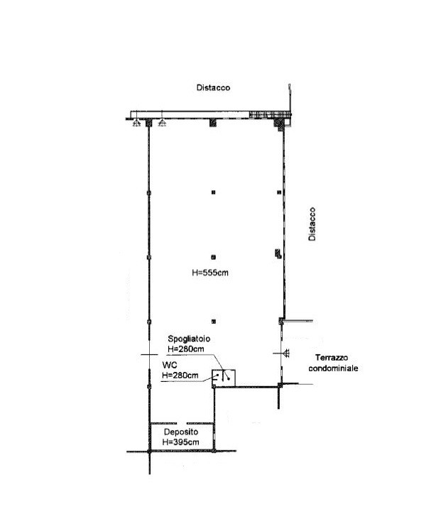 Il capannone posto al 4° piano, è composto da doppi ingressi un ampio locale, oltre deposito, servizio e spogliatoio.